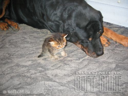 Ротвейлер всегда очень осторожно обращается с малышней.