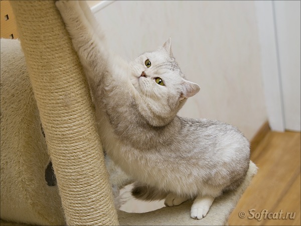 Нексичка показывает как нужно правильно точить коготки о специальные веревочные столбики