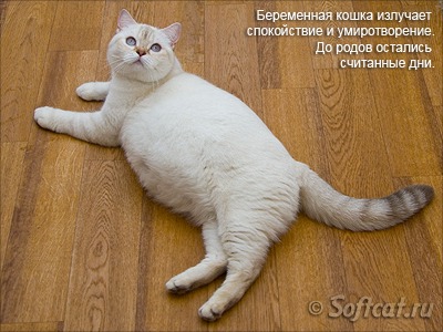 После того как кошка снова оказалась дома не ждите, что состоявшаяся вязка как волшебный выключатель остановит течку. Ничего подобного! Кошка будет течь ровно столько, сколько отмеряно ей по ее физиологии и ни часом меньше, вне зависимости от того, забеременела она или нет. Но вот закончится наконец течка и жизнь войдет в свою привычную колею. Несколько недель ничто не будет указывать на произошедшие в организме кошки изменения. Возможно у нее увеличится аппетит, а возможно и нет, так что не стоит присматриваться и ломать голову насколько все прошло удачно, нужно набраться терпения и подождать. Роды